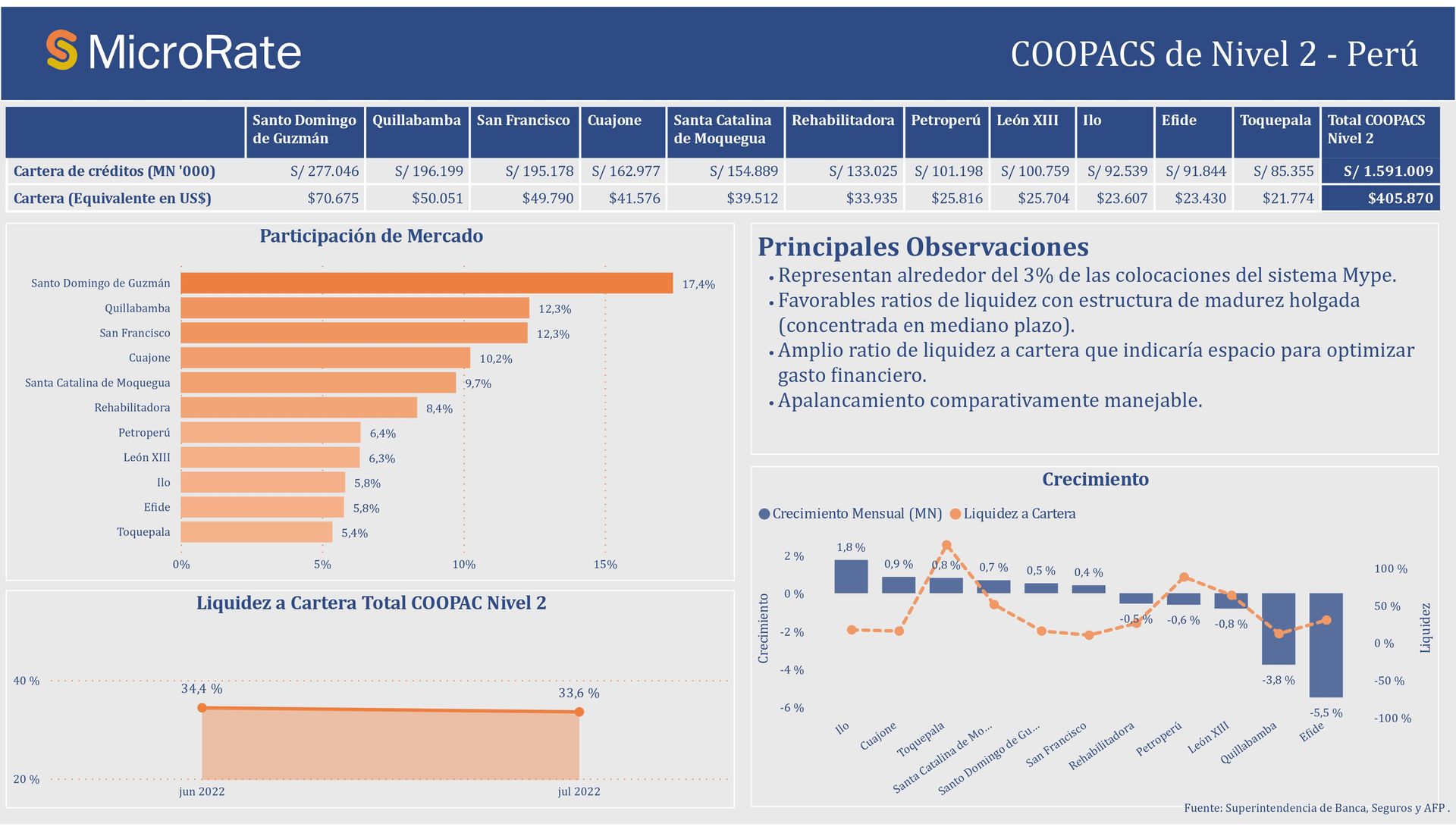 En este Benchmark compartimos un resumen de los resultados del sector COOPAC, anotando aspectos relevantes observados en el desempeño de las Coopac peruanas de nivel 2 a Julio 2022.