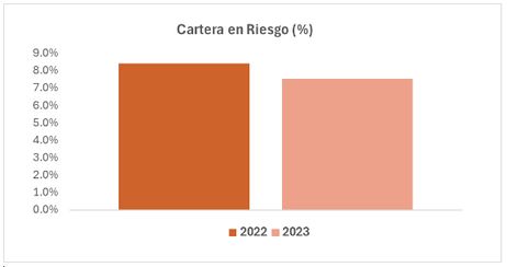 El indicador de cartera en riesgo muestra importante reducción, pasando de 8.4% a 7.5% en el plazo de 1 año. En este sentido, la mediana indica que al menos la mitad de las instituciones incluidas en el análisis muestran una mejora importante en la calidad de su cartera. Las políticas orientadas a mejorar las colocaciones después de la pandemia, así como una mayor cautela de las instituciones, explican estos resultados.