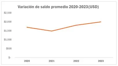 Cuando se comparan estos resultados con los del ejercicio anterior, el crédito promedio aumenta en 10.3%, para mantener el dinamismo del volumen de colocaciones. Estos créditos de mayor tamaño pueden ser reflejo de una adaptación a las necesidades de financiamiento como producto de la inflación. A su vez, puede significar también una mayor exposición de la entidad financiera al riesgo crediticio, ya que puede implicar una mayor concentración del portafolio en ciertos productos