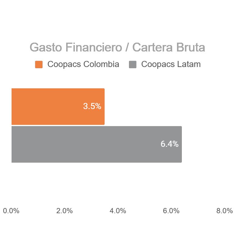 Asimismo, el costo financiero (gastos financieros sobre cartera bruta) alcanzó niveles que representan cerca de la mitad de lo registrado en sus pares latinoamericanos (3.5% versus 6.4%, respectivamente).