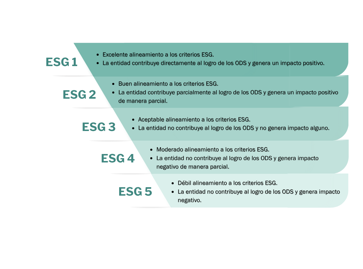 El reporte de Calificación ESG analiza los siguientes aspectos: